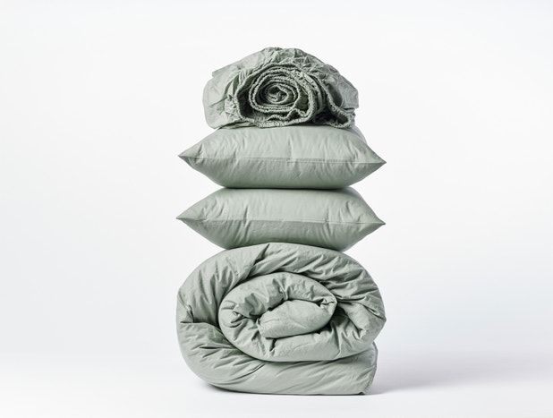 Пастельное белье сделано из сатина (100% хлопок) цвет светло-зеленый. Комплект состоит из Наволочек 50х70 - 2шт, Пододеяльника 175х215 - 1шт, Простынь 220х240 - 1шт.