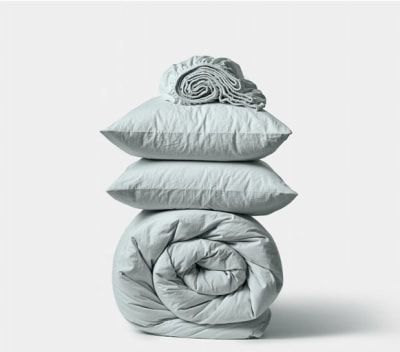 Пастельное белье сделано из сатина (100% хлопок) цвет светло-синий. Комплект состоит из Наволочек 50х70 - 2шт, Пододеяльника 175х215 - 1шт, Простынь 220х240 - 1шт.